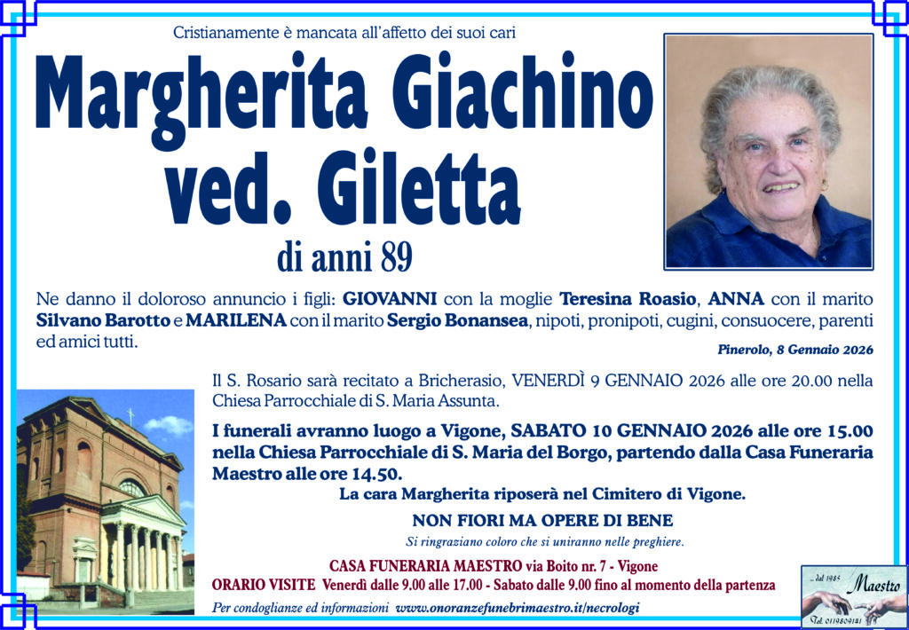 BORETTO Maria in BESSONE di anni 84