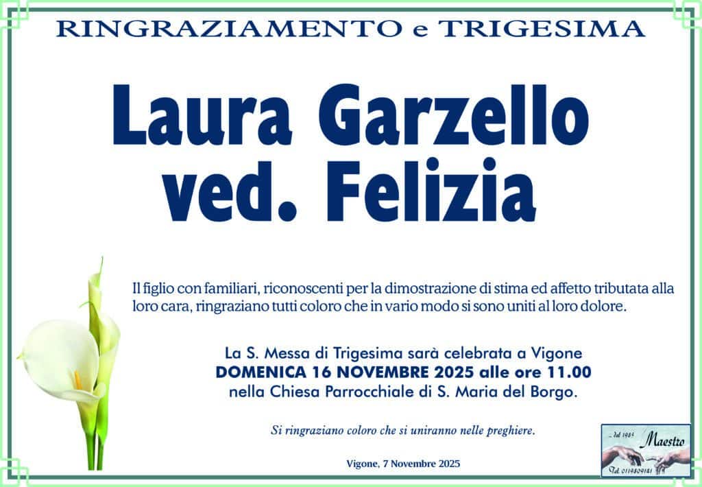 GARZELLO Laura ved. FELIZIA – Ringraziamento