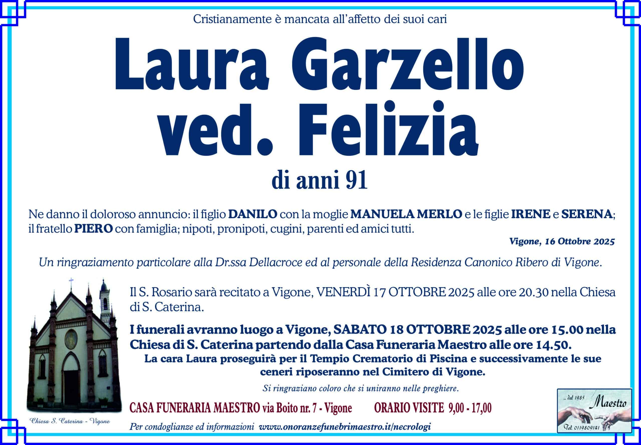 GARZELLO LAURA ved. FELIZIA di anni 91