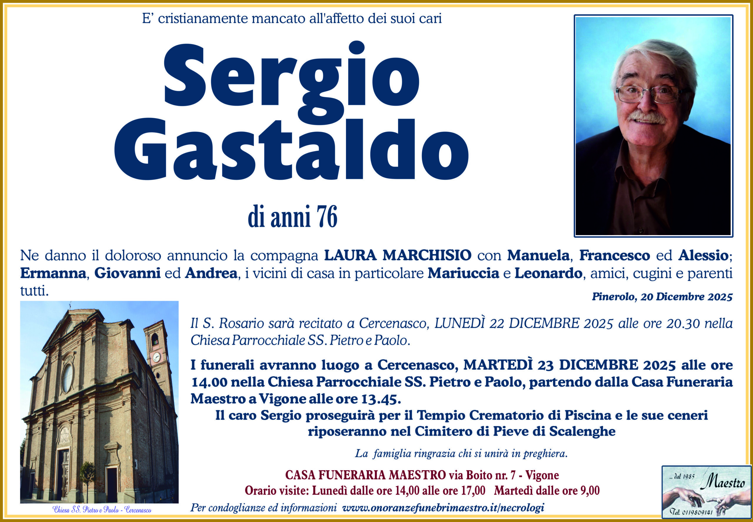 GASTALDO Sergio di anni 76