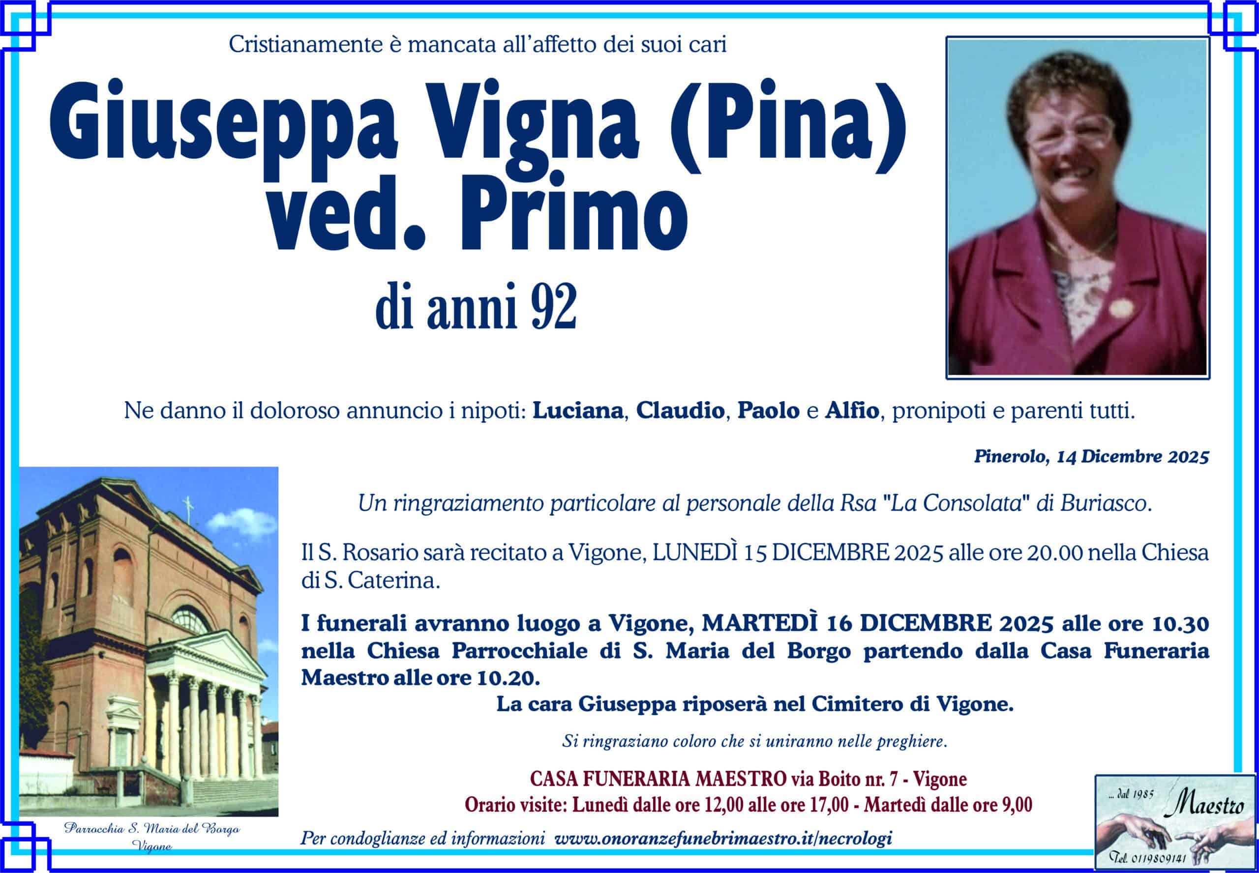 VIGNA Giuseppa (Pina) ved. PRIMO di anni 92